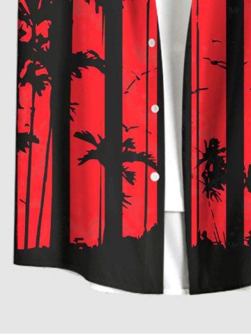 Plus Size American Flag Ink Painting Coconut Tree Print Button Pocket Shirt For Men - Red - L