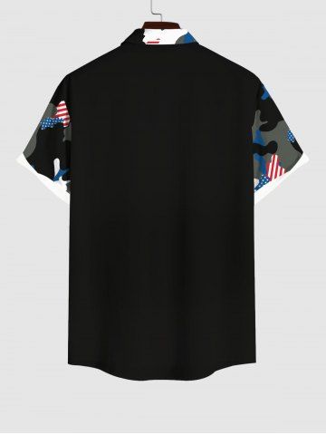 Plus Size Camouflage American Flag Colorblock Print Button Pocket Shirt For Men - Black - S