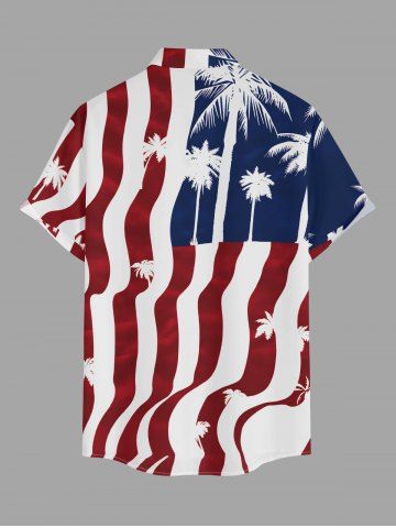 Patriotic Men > Plus Size Coconut Tree Patriotic American Flag Print Button Pocket Shirt For Men