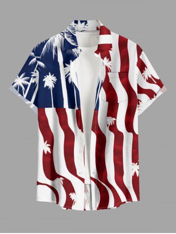 Patriotic Men > Plus Size Coconut Tree Patriotic American Flag Print Button Pocket Shirt For Men