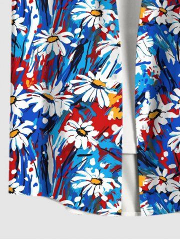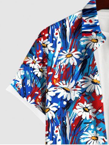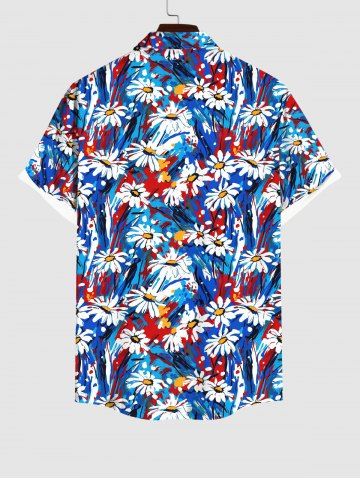 Patriotic Men > Plus Size Daisy Flower Oil Painting Print Buttons Pocket Hawaii Shirt For Men