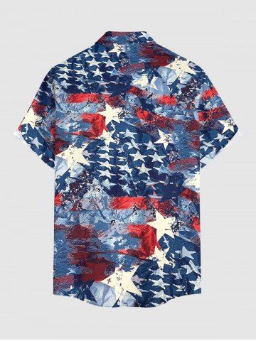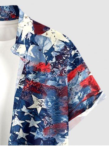 Plus Size Distressed Patriotic American Flag Print Button Pocket Shirt For Men - Deep Blue - 3xl