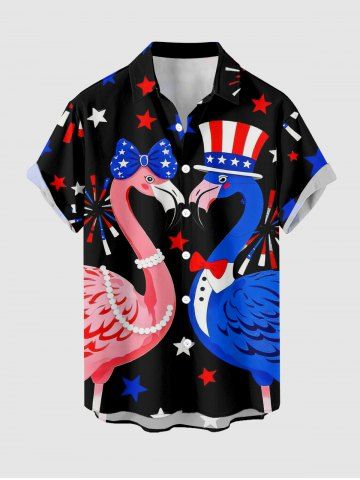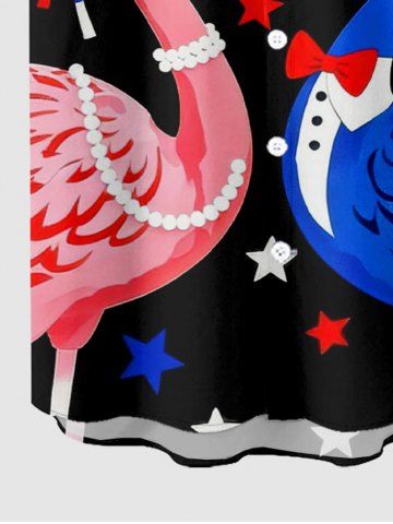 Plus Size Flamingo Patriotic American Flag Print Hawaii Button Pocket Shirt For Men - Black - L