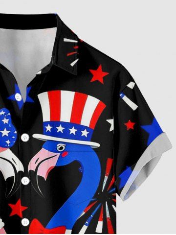 Plus Size Flamingo Patriotic American Flag Print Hawaii Button Pocket Shirt For Men - Black - 3xl