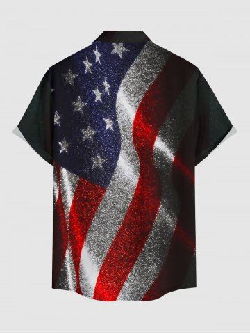 Patriotic Men > Plus Size Glitter Patriotic American Flag Print Button Pocket Shirt For Men