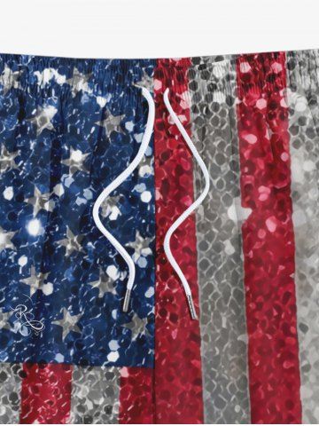 Patriotic Men > Plus Size Glitter Sequins Patriotic American Flag Print Drawstring Beach Shorts For Men
