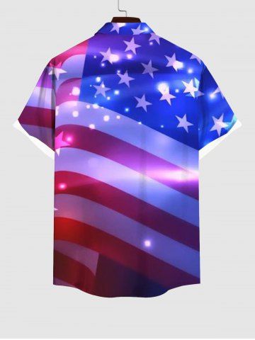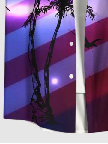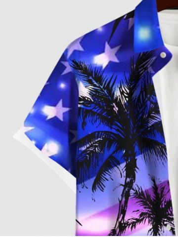 Plus Size Glitter Sparkling American Flag Coconut Tree Print Hawaii Button Pocket Shirt For Men - Multi-a - L
