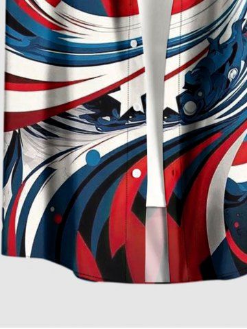 Plus Size Men Patriotic American Flag Swirl Print Buttons Pocket Shirt - Deep Blue - 4xl