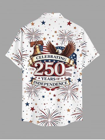 Plus Size Patriotic American Flag Bell Eagle Fireworks Print Buttons Pocket Shirt For Men - White - M