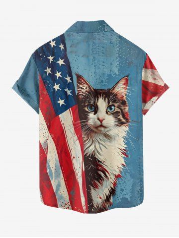 Patriotic Men > Plus Size Patriotic American Flag Cat Print Button Pocket Shirt For Men