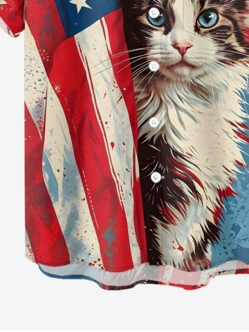 Patriotic Men > Plus Size Patriotic American Flag Cat Print Button Pocket Shirt For Men