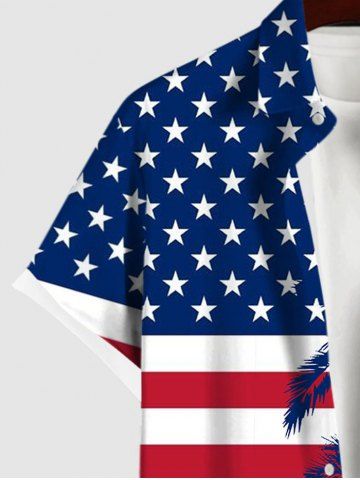 Plus Size Patriotic American Flag Coconut Tree Print Button Pocket Shirt For Men - Multi-a - L
