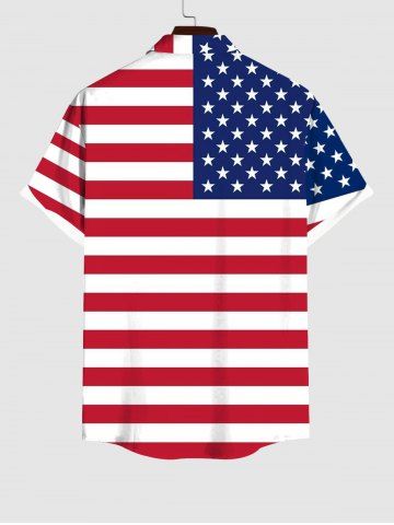Plus Size Patriotic American Flag Coconut Tree Print Button Pocket Shirt For Men - Multi-a - 2xl