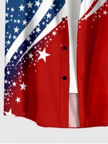 Plus Size Patriotic American Flag Colorblock Print Buttons Pocket Shirt For Men - Blue - 3xl