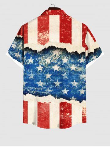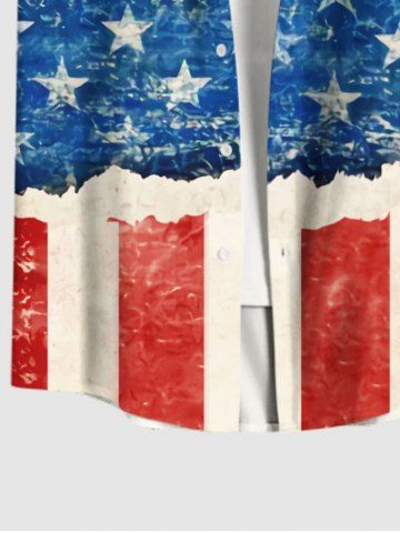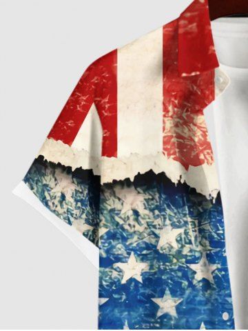 Plus Size Patriotic American Flag Distressed Ripped 3D Print Buttons Pocket Shirt For Men - Multi-a - Xl