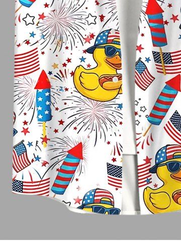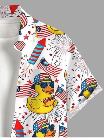 Plus Size Patriotic American Flag Duck Fireworks Print Buttons Pocket Hawaii Shirt For Men - White - 2xl