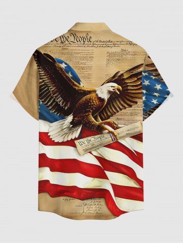 Plus Size Patriotic American Flag Eagle Newspaper Print Buttons Pocket Shirt For Men - Light Coffee - S