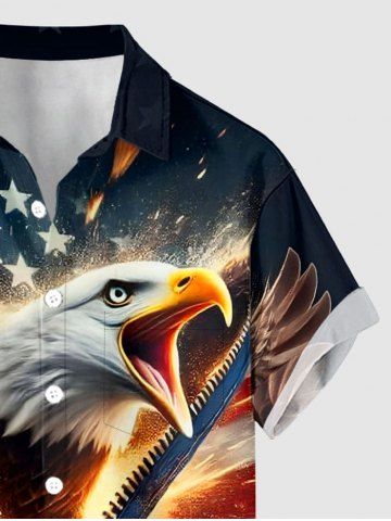 Patriotic Men > Plus Size Patriotic American Flag Eagle Print Button Pocket Shirt For Men