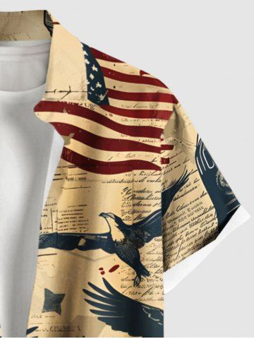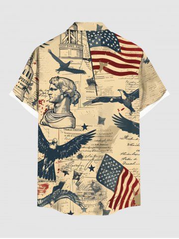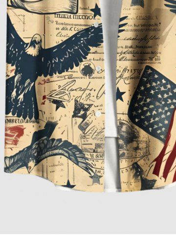 Patriotic Men > Plus Size Patriotic American Flag Eagle Sculpture Distressed Newspaper Print Button Pocket Shirt For Men