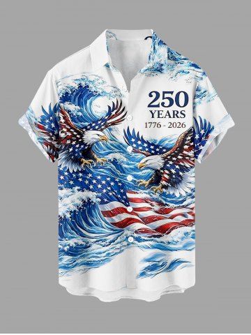 Patriotic Men > Plus Size Patriotic American Flag Eagle Sea Waves Print Buttons Pocket Shirt For Men