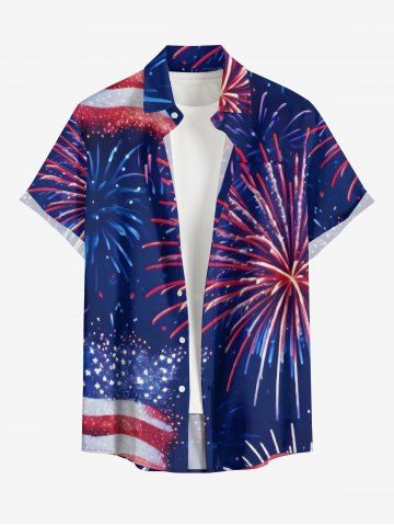 Plus Size Patriotic American Flag Fireflame Print Button Pocket Shirt For Men - Navy Blue - 2xl