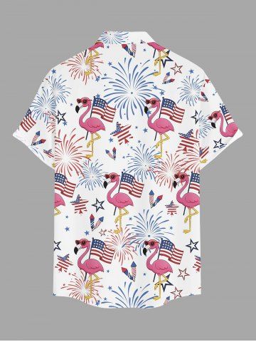 Patriotic Men > Plus Size Patriotic American Flag Fireworks Flamingo Print Buttons Pocket Shirt For Men