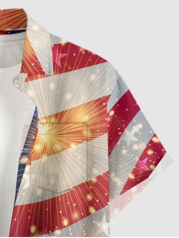 Patriotic Men > Plus Size Patriotic American Flag Fireworks Glitter 3D Print Buttons Pocket Shirt For Men