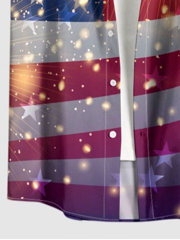 Plus Size Patriotic American Flag Fireworks Glitter 3D Print Buttons Pocket Shirt For Men - Blue - M