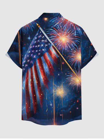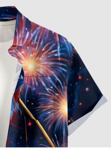 Patriotic Men > Plus Size Patriotic American Flag Fireworks Oil Painting Print Buttons Pocket Shirt For Men