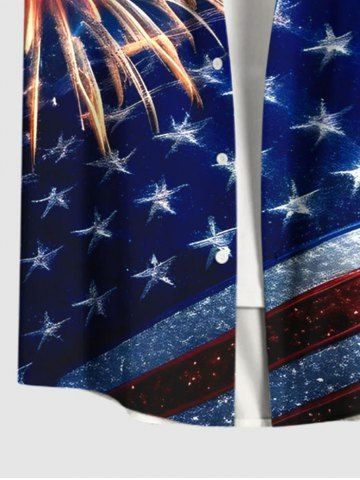 Plus Size Patriotic American Flag Fireworks Print Buttons Pocket Shirt For Men - Black - L
