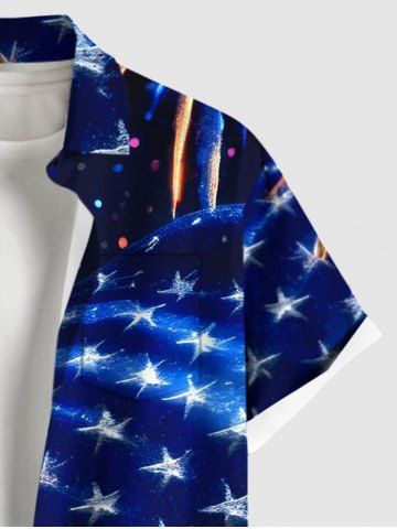 Patriotic Men > Plus Size Patriotic American Flag Fireworks Print Buttons Pocket Shirt For Men
