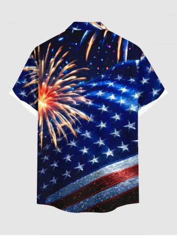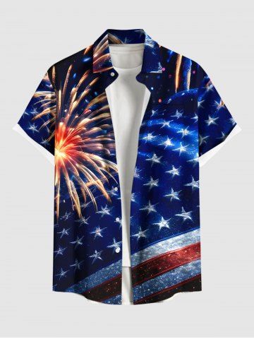 Patriotic Men > Plus Size Patriotic American Flag Fireworks Print Buttons Pocket Shirt For Men