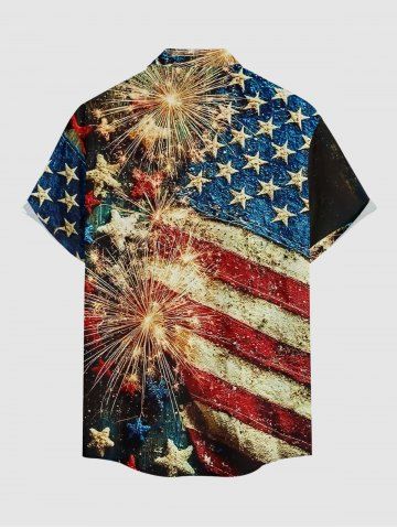 Plus Size Patriotic American Flag Fireworks Print Buttons Pocket Shirt For Men - Blue - S