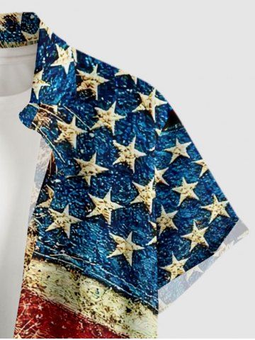 Plus Size Patriotic American Flag Fireworks Print Buttons Pocket Shirt For Men - Blue - 6xl