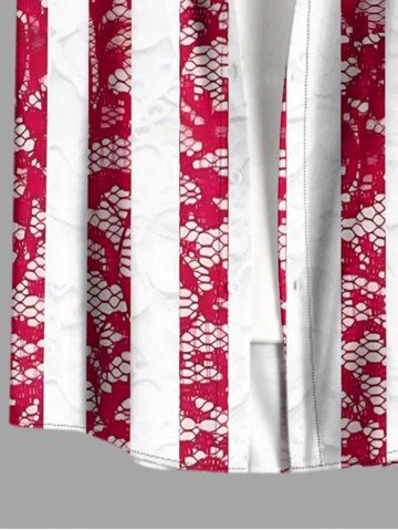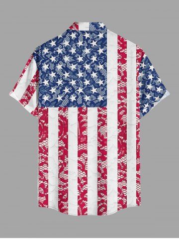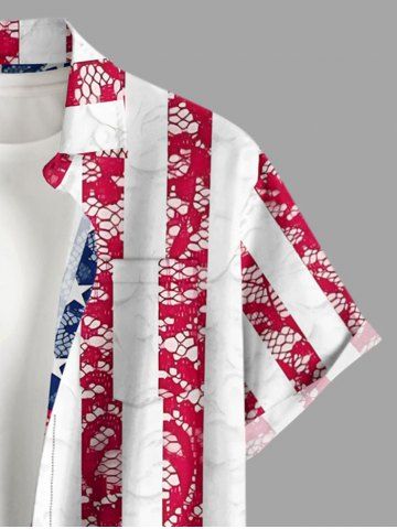 Plus Size Patriotic American Flag Floral Lace 3D Print Buttons Pocket Shirt For Men - Red - Xl
