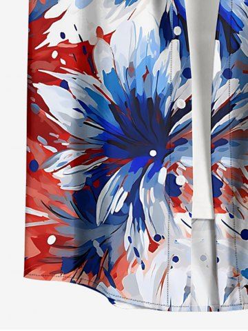 Patriotic Men > Plus Size Patriotic American Flag Flowers Paint Splatter Print Buttons Pocket Shirt For Men