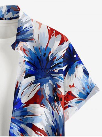 Patriotic Men > Plus Size Patriotic American Flag Flowers Paint Splatter Print Buttons Pocket Shirt For Men