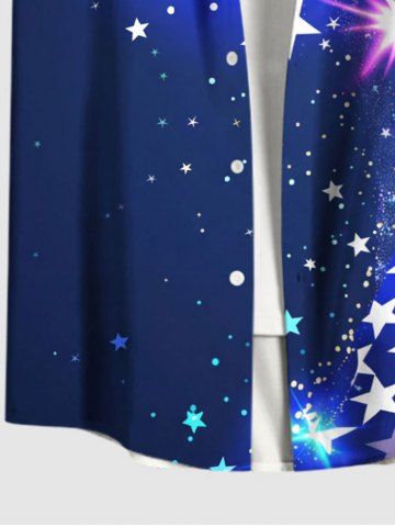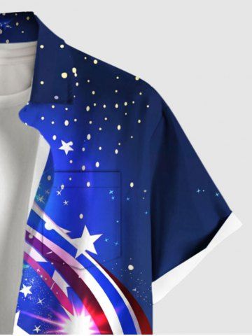 Plus Size Patriotic American Flag Galaxy Print Buttons Pocket Shirt For Men - Deep Blue - S