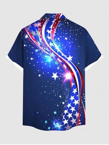 Plus Size Patriotic American Flag Galaxy Print Buttons Pocket Shirt For Men - Deep Blue - 6xl