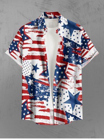 Patriotic Men > Plus Size Patriotic American Flag Graffiti Print Button Pocket Shirt For Men