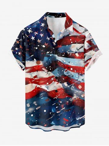 Plus Size Patriotic American Flag Graffiti Print Buttons Pocket Shirt For Men - Blue - S