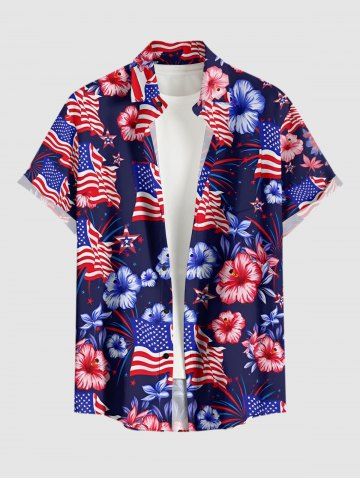 Patriotic Men > Plus Size Patriotic American Flag Hibiscus Flower Print Buttons Pocket Shirt For Men