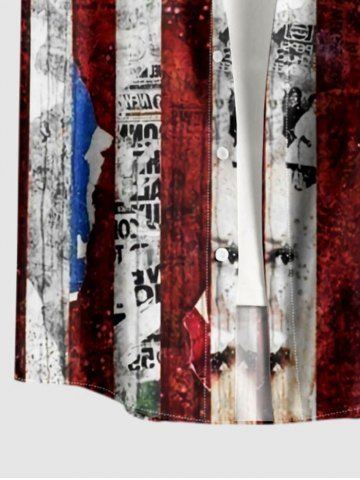 Patriotic Men > Plus Size Patriotic American Flag Newspaper Print Button Pocket Shirt For Men