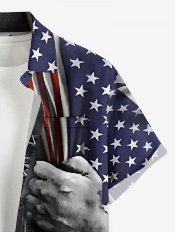 Patriotic Men > Plus Size Patriotic American Flag Pigeon Print Button Pocket Shirt For Men