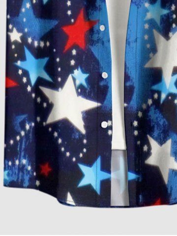 Plus Size Patriotic American Flag Print Button Pocket Shirt For Men - Deep Blue - M