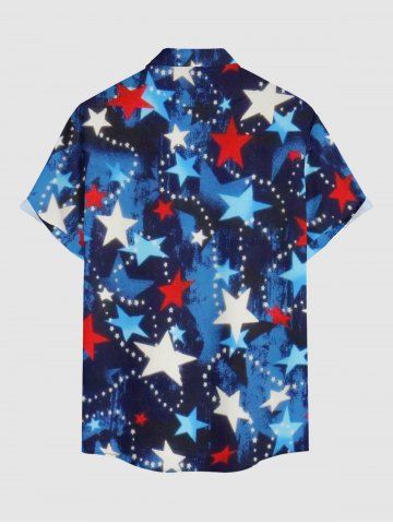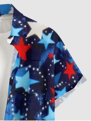 Plus Size Patriotic American Flag Print Button Pocket Shirt For Men - Deep Blue - 6xl