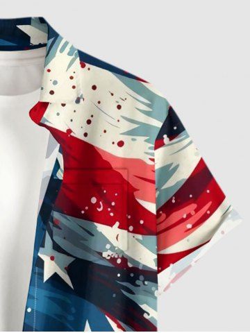 Patriotic Men > Plus Size Patriotic American Flag Print Button Pocket Shirt For Men