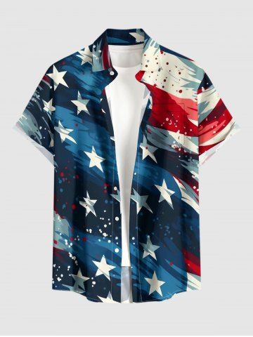 Patriotic Men > Plus Size Patriotic American Flag Print Button Pocket Shirt For Men