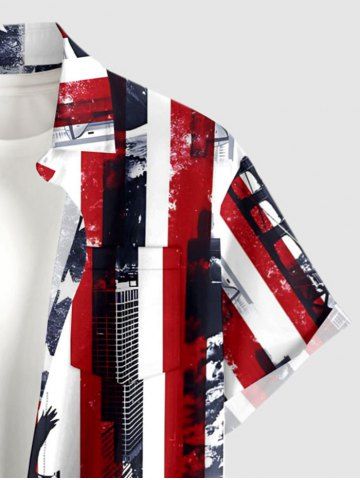 Patriotic Men > Plus Size Patriotic American Flag Print Button Pocket Shirt For Men