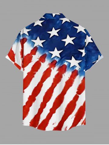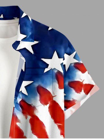Plus Size Patriotic American Flag Print Button Pocket Shirt For Men - Blue - L